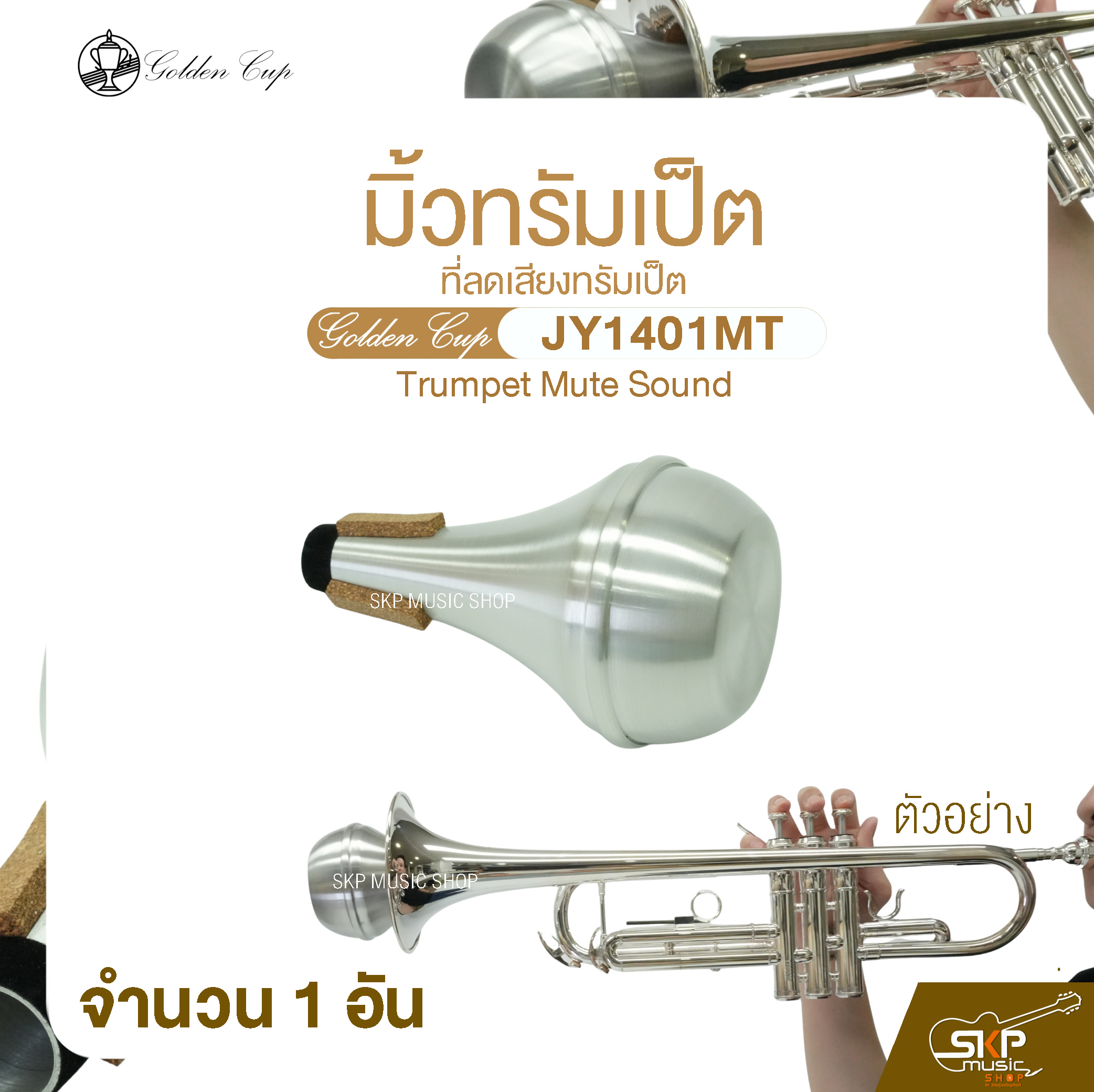 Golden Cup Trumpet Mute ช่วยลดระดับเสียงของทรัมเป็ตลง โดยไม่ทำลายคุณภาพของโทนเสียง เหมาะสำหรับการฝึกซ้อมในบ้าน ห้องเรียน หรือสถานที่ที่ต้องการควบคุมระดับเสียง