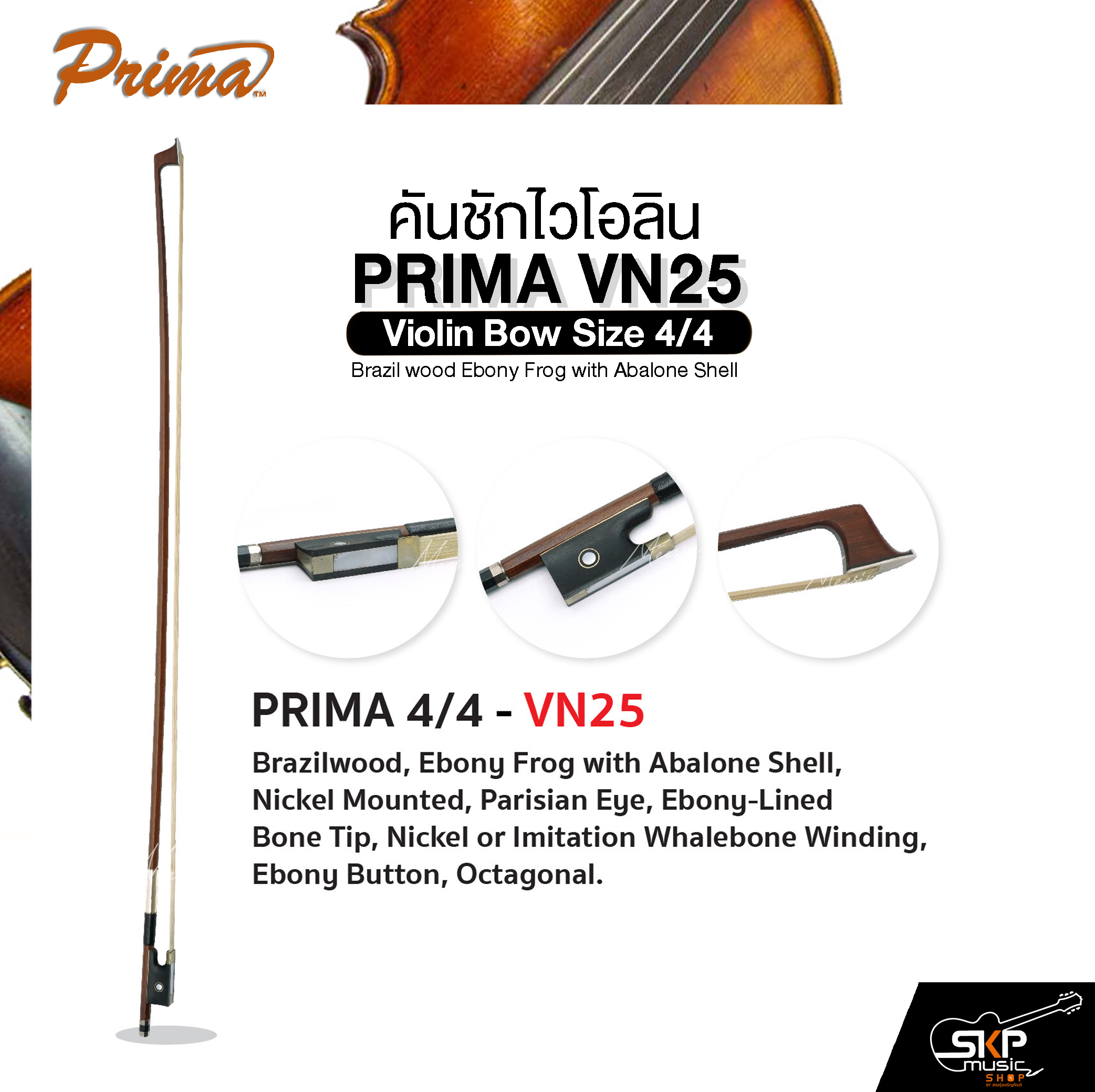 PRIMA VN25 Violin Bow คันชักไวโอลิน ขนาด 4/4 ไม้ Brazil ด้าม Ebony + Abalone Shell