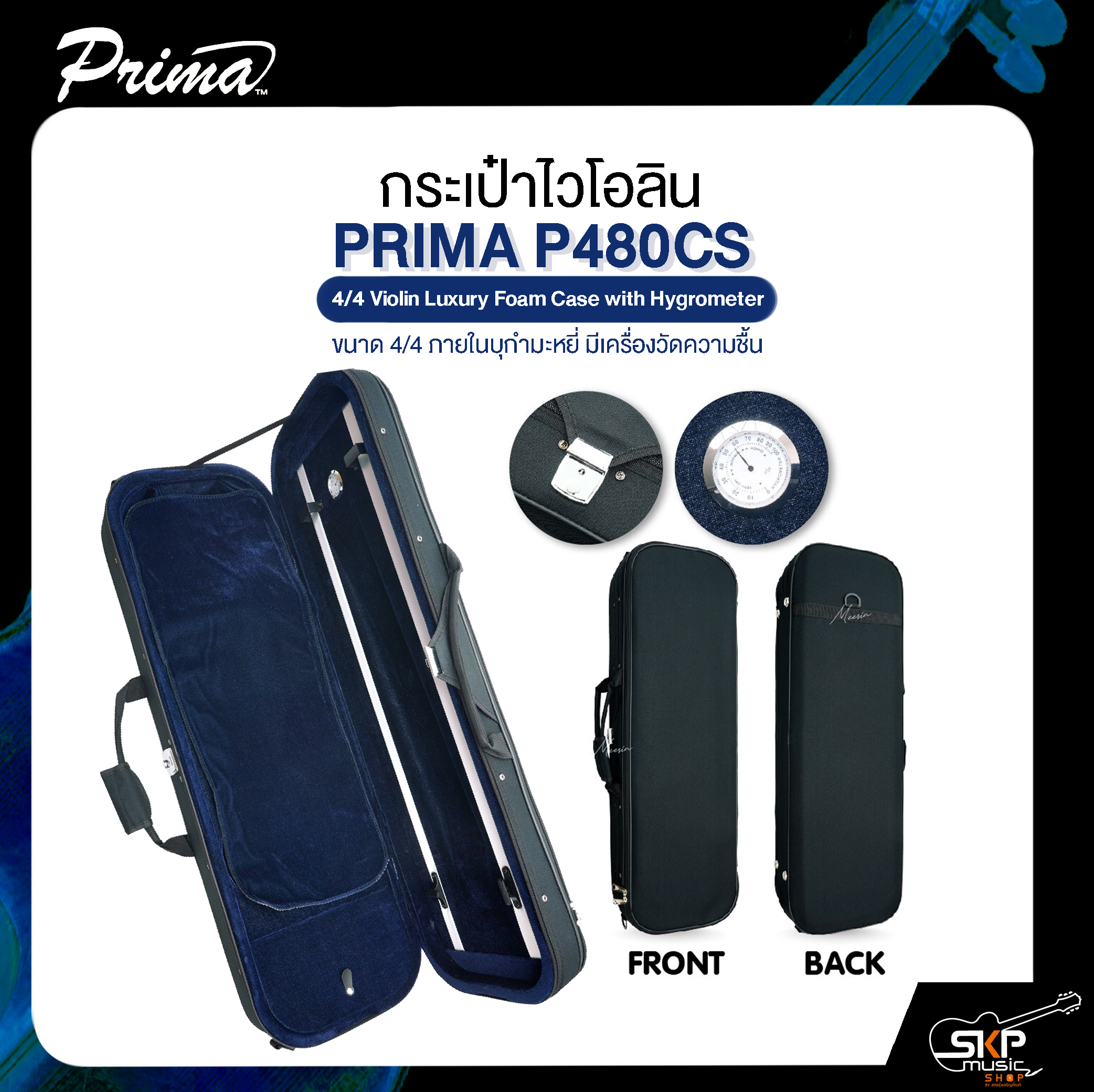 PRIMA P480CS Violin Luxury Foam Case 4/4 กระเป๋าไวโอลินทรงสี่เหลี่ยมหรู ภายในบุกำมะหยี่ พร้อมเครื่องวัดความชื้น (Hygrometer)