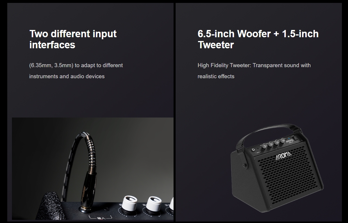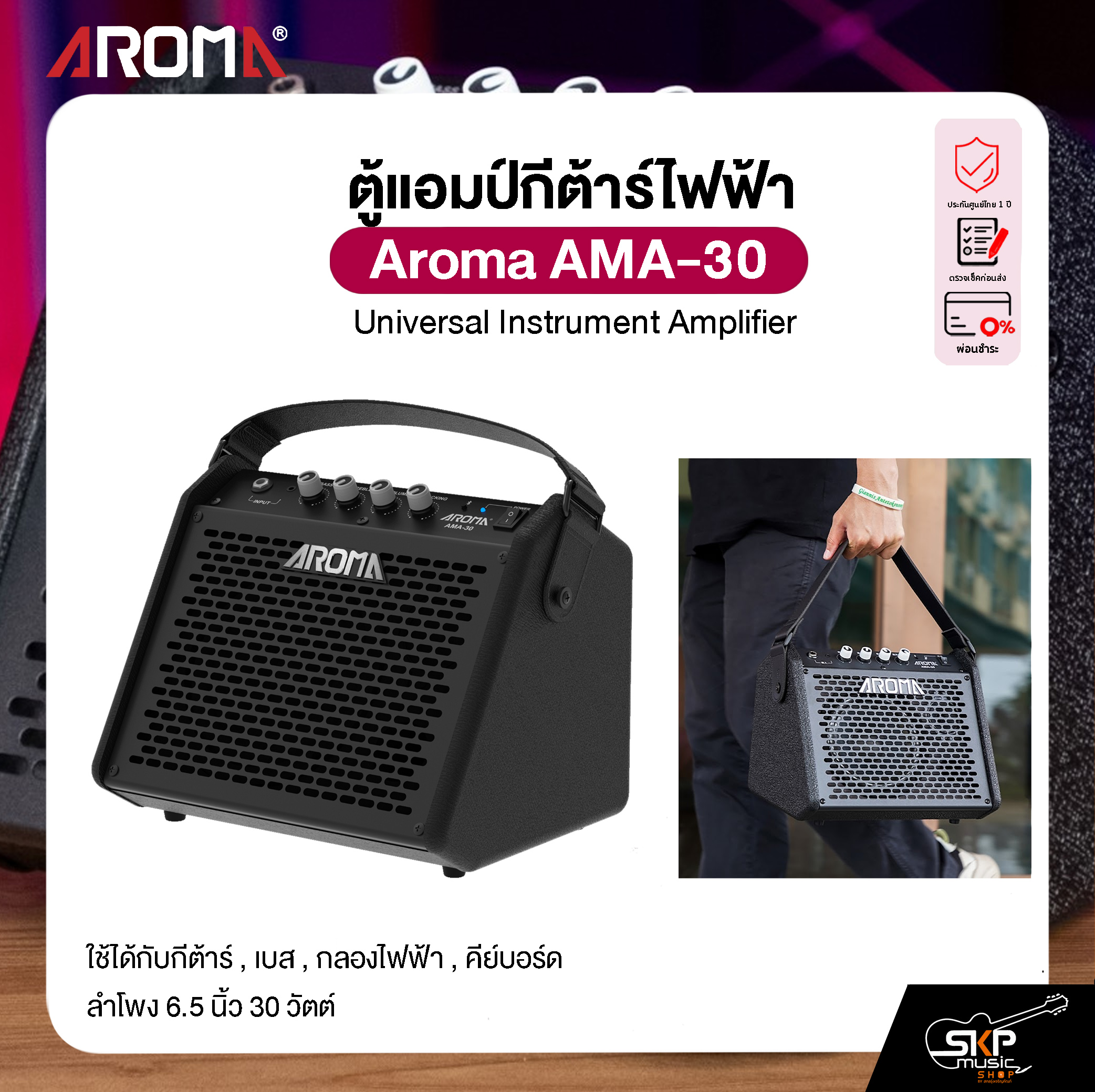 Aroma AMA-30 ตู้แอมป์มอนิเตอร์อเนกประสงค์แบบพกพา ให้กำลังขับ 30 วัตต์ พร้อมลำโพง 6.5 นิ้ว + ทวีตเตอร์ 1.5 นิ้ว ให้ย่านเสียงครบทั้งทุ้มกลางแหลม เหมาะสำหรับคนเล่นดนตรีทุกรูปแบบ