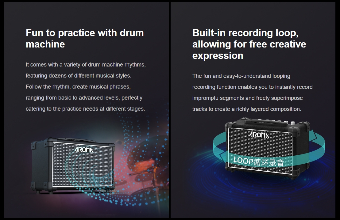 Aroma TM-15S Electric Guitar Amplifier แอมป์กีตาร์ 15 วัตต์ พร้อมลูป เอฟเฟกต์ และจังหวะกลอง