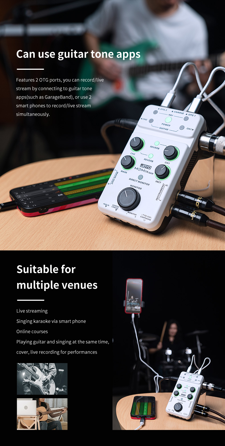 ออดิโอ อินเตอร์เฟสและมิกเซอร์ JOYO รุ่น MOMIXPRO เครื่องผสมเสียงแบบพกพา ใช้ได้ทั้งสมาร์ทโฟนและ PC พร้อมส่ง!!