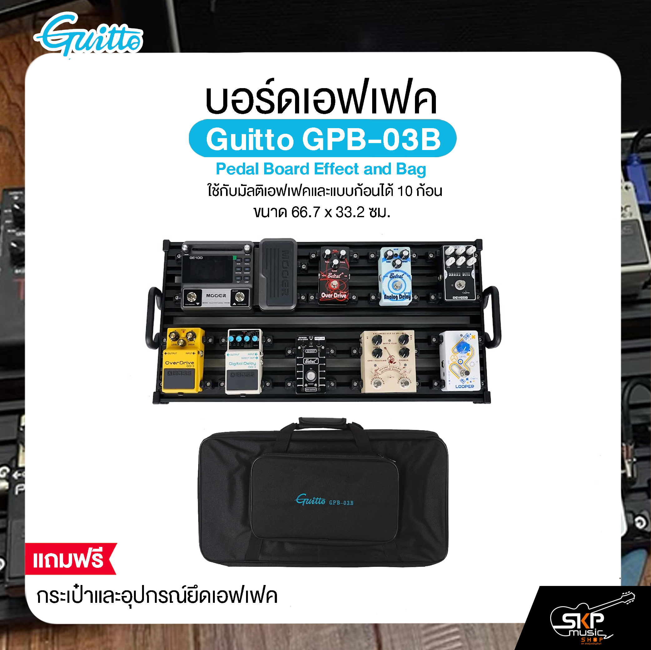 Guitto GPB-03B คือบอร์ดเอฟเฟคไซซ์ใหญ่ สำหรับนักดนตรีมืออาชีพที่ต้องการพื้นที่จัดวางเอฟเฟคจำนวนมากรองรับทั้ง เอฟเฟคแบบก้อน และ มัลติเอฟเฟคขนาดใหญ่ ได้อย่างลงตัว แข็งแรง ดูโปร และใช้งานสะดวกทั้งบนเวทีและในห้องซ้อม
