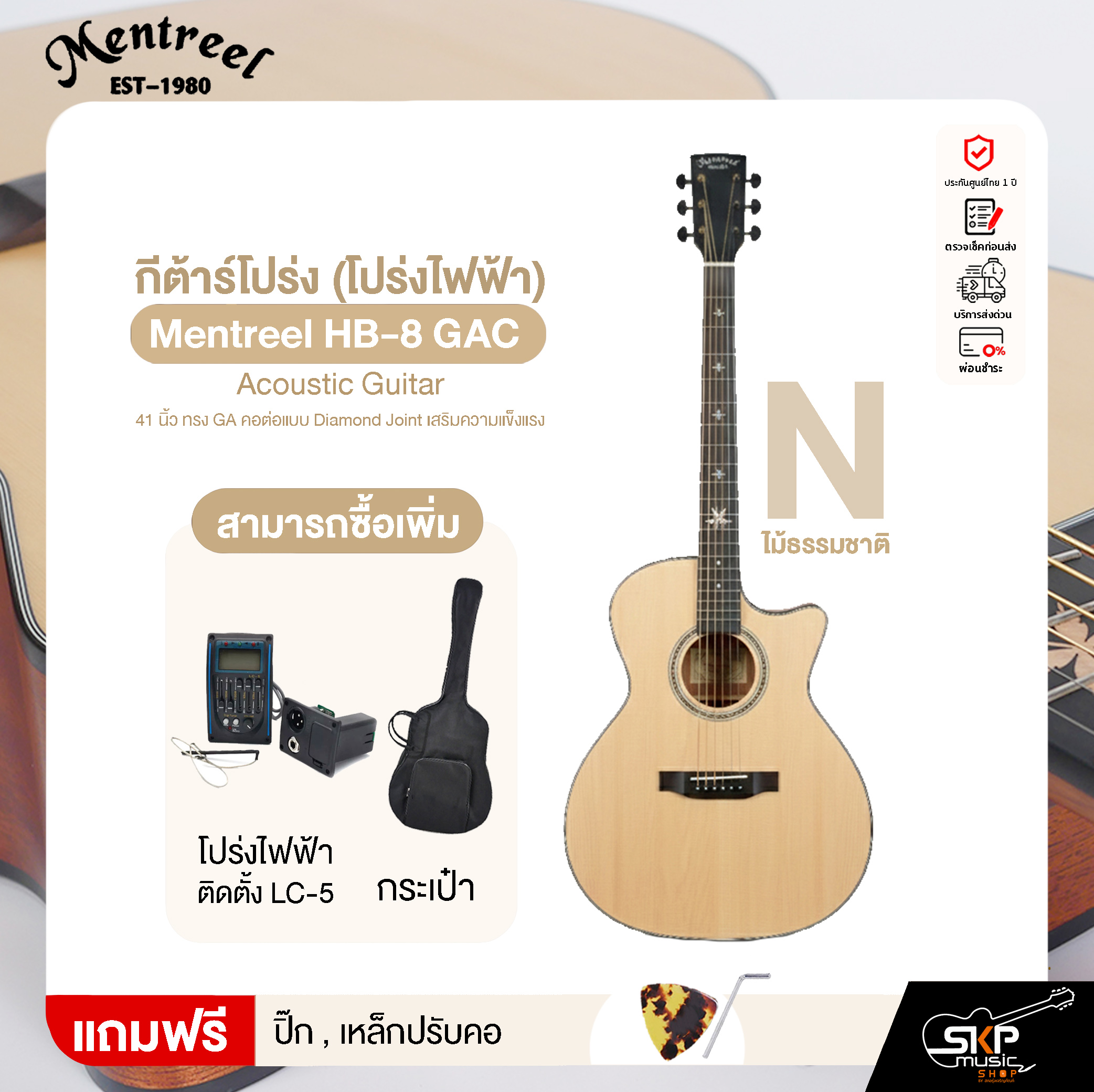 ▶ กีต้าร์โปร่งไฟฟ้า (ติดตั้ง LC-5 Pickup) + สายแจ็ค + กระเป๋า