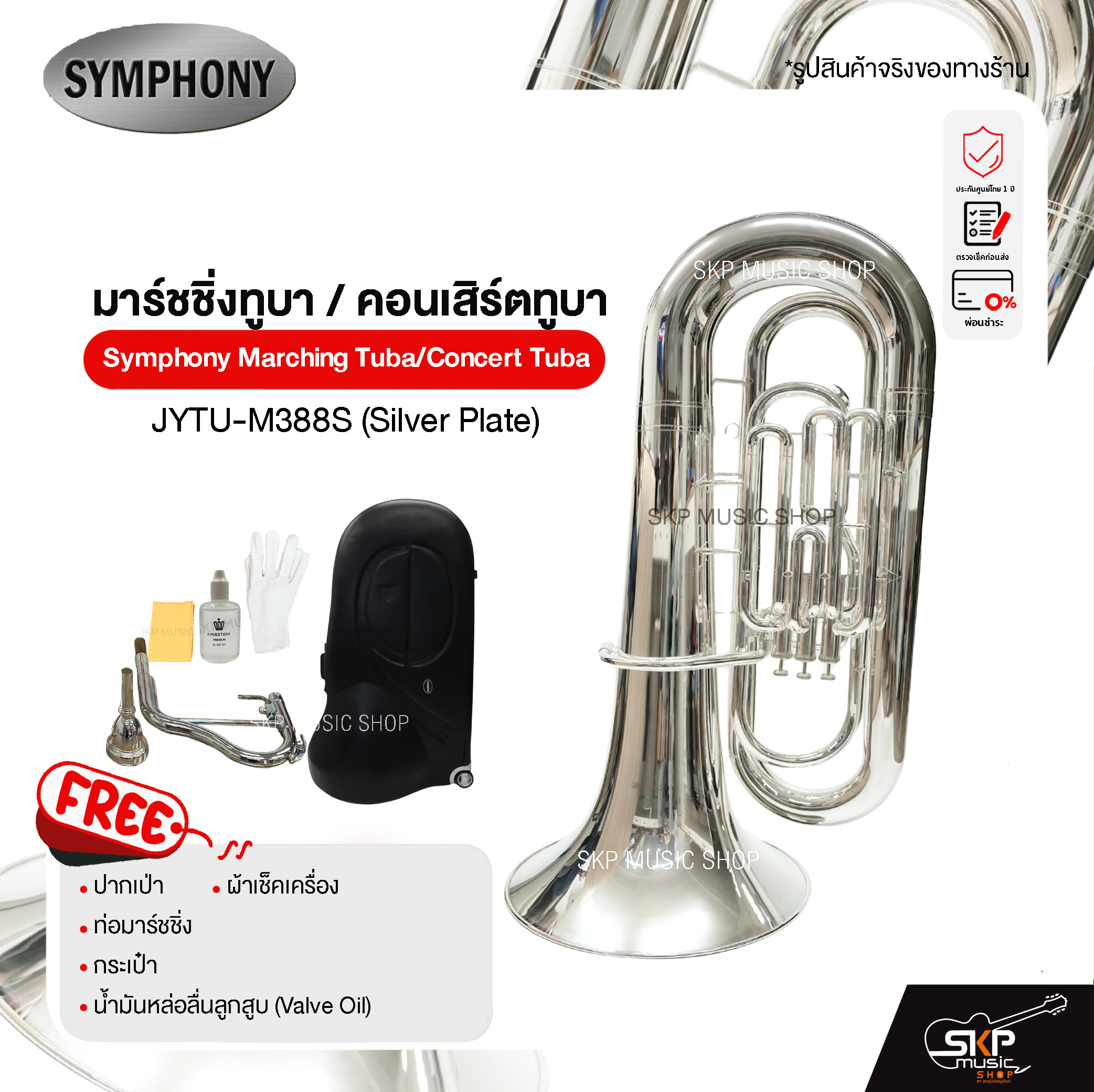 ตัวเครื่องผลิตจากทองแดงคุณภาพสูงสำหรับเครื่องดนตรีโดยเฉพาะ พร้อมเคลือบ Silver Plate เพิ่มความสวยงาม ความทนทาน และการสะท้อนเสียงที่คมชัด มาพร้อมอุปกรณ์ครบชุด พร้อมใช้งานทันที